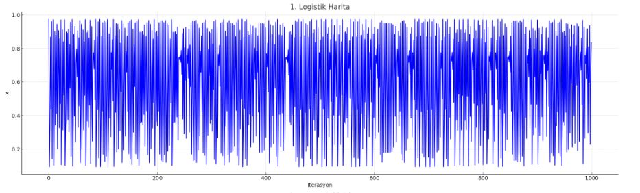 Logistik harita, popülasyon dinamiklerini modellemek için kullanılan basit ama kaotik davranışlar sergileyen bir denklemdir:Burada , . iterasyondaki popülasyonu ve büyüme oranını temsil eder. belirli bir eşiği geçtiğinde (genellikle 3.57 civarı), sistem kaotik davranış göstermeye başlar.