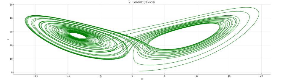 Lorenz Çekicisi: Kelebek şeklindeki faz uzayı yörüngesi ile kaotik sistemin imzasıdır.