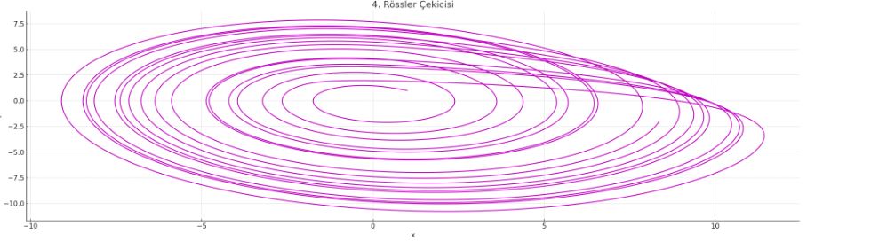 Rössler Çekicisi: Basit spiral yapılarla kaotik davranışı gösterir.