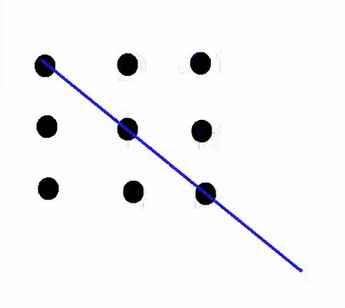 9 noktayı 4 çizgiyle birleştirme problemi, düşünce sınırlarımızı aşmamız gerektiğini gösterir. Noktalar kare şeklinde düzenlenmiştir ve çözüm genellikle çizgileri bu karesi düzenin dışına taşıyarak mümkündür. İnsanlar genelde noktaları kare sınırları içinde birleştirme eğilimindedir; ancak çözüm, bu sınırların ötesine geçmeyi gerektirir. Bu örüntü, yaratıcı problem çözmede "kutunun dışında düşünme" ilkesini temsil eder ve karmaşıklık dinamiğinde yeni yollar ararken mevcut sınırlamaları sorgulamamız gerektiğini vurgular.